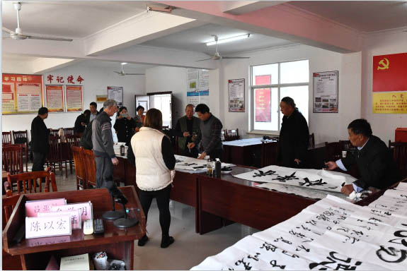 2021年11月15日县社区教育中心联合县老年大学书画班、县老年书画联谊会一行,在镇书画联谊会会长廖运来先生的陪同下,来到新发镇花园村开展了郎溪县社区教育中心书画培训与展示活动。新发镇花园村位于郎溪县新发镇西部,北与江苏省固城镇接壤,南临荡南湖,西与宣州区狸桥镇毗邻,东临涧西村。如今的花园村就是一座花圆,处处呈现美景。村委会对本次活动高度重视,村书记牟学明及村委一班领导均在村委会迎候大家,镇书画联谊会秘书长孙高广先生及俩位书画老师也来到现场参与活动。活动期间,村两委领导在现场认真观摩了各位老师的书画创作,对各位老师前来传经送宝表示热烈欢迎和衷心感谢,书画爱好者还分别与各位创作老师合影纪念。活动总共书写了“天道酬勤,梦里无惊,物华天宝,宁静致这,厚德载物,事事如竟,水中乐,扬帆起航”等20余幅字画作品,全部赠送给了村委会和书画爱好者留作宣传和收藏。最后,村领导和老师们在一起合影留念。本次活动取得了圆滿成功!